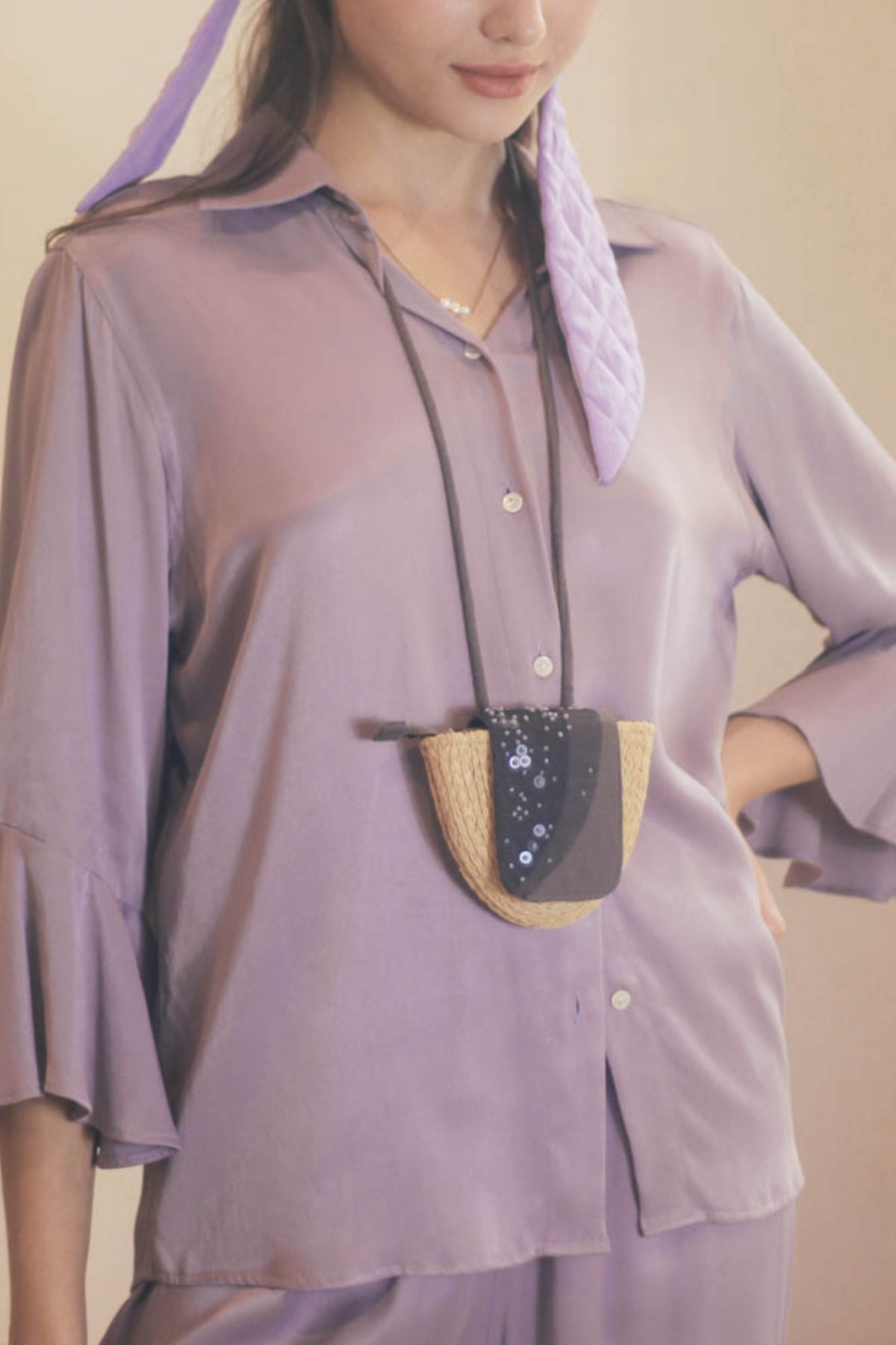 The perfect combination of jewelry and bag in the minimal shape with spontaneous details depicts an imaginary star sky of a city girl. Thinking of the Stars necklace bag is crafted with natural raffia, eco linen and a touch of selective pieces for highlight details. You can wear it on your necklace, crossbody or even link as a bag charm to complete a unique contemporary style.